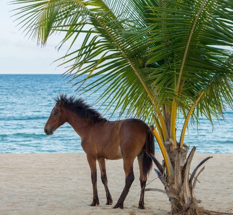 Discover hidden underwater treasures on this quiet island with free roaming wild horses!